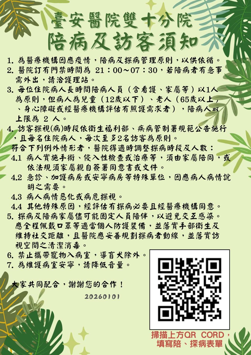 陪病及訪客須知