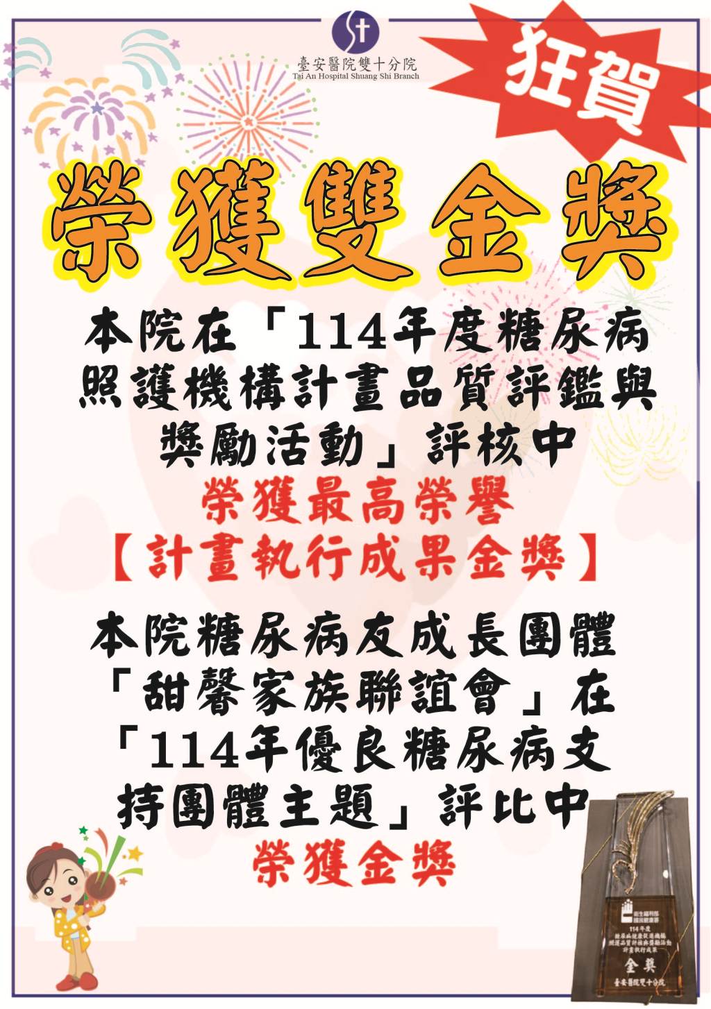賀!本院榮獲「糖尿病照護機構品質評鑑」雙金獎肯定